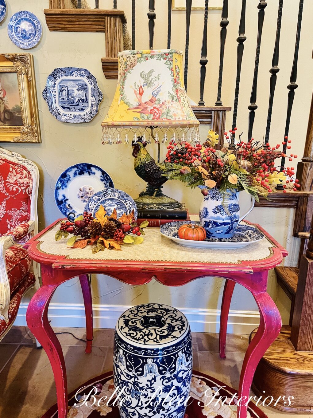 Hi Shannon. I am so happy you were able to get the fabulous table that belonged to Charles Faudree. It is perfect with the lamp and the toile French chair. I love the vignette beneath your stairs, it is lovely as are your fall touches that you have added. I know receiving two inches of rain was a blessing. Wishing you a happy weekend , sweet friend!
